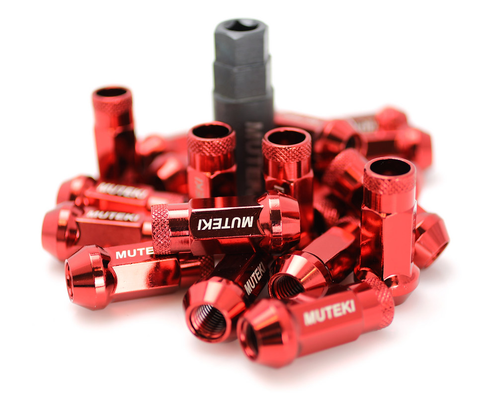 Muteki lug nuts are high-quality wheel lugs built for performance driving. These Muteki tuner lug nuts are strong, lightweight, and compact to enhance your driving experience! Muteki lug nuts are built with OEM quality materials to bring you a level of strength and durability that you can trust. For added security, each set also comes with a special key required to remove them. Muteki lug nuts provide the perfect blend of form and function to help you get the most out of your car. With their sleek design and reliable construction, Muteki lug nuts are an essential upgrade for any performance-mi…
